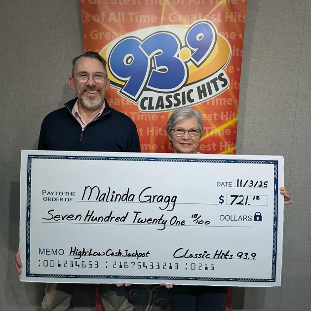Congratulations to Melinda Gragg, our latest High Low Cash Jackpot winner! She took home a Halloween haul of $721.18! Listen every weekday at 7a, 9a, 11a, 1p and 3p for your chance to call us and guess the jackpot number. We tell you if the guess is too High or too Low. Get it correct … Continue reading High Low Cash Jackpot Winner – Melinda Gragg