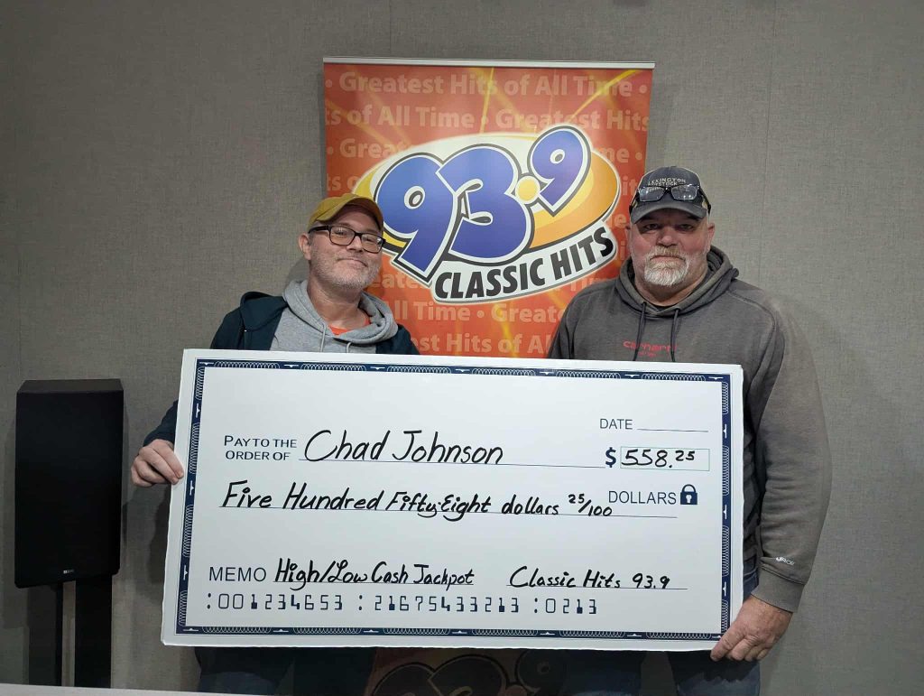 Congratulations to Chad Johnson of Columbus, our latest High Low Cash Jackpot winner! He took home $558.25! Listen in, follow us on Facebook and join the Loyal Listener Club so you never miss a chance to win with Classic Hits 93.9!!!